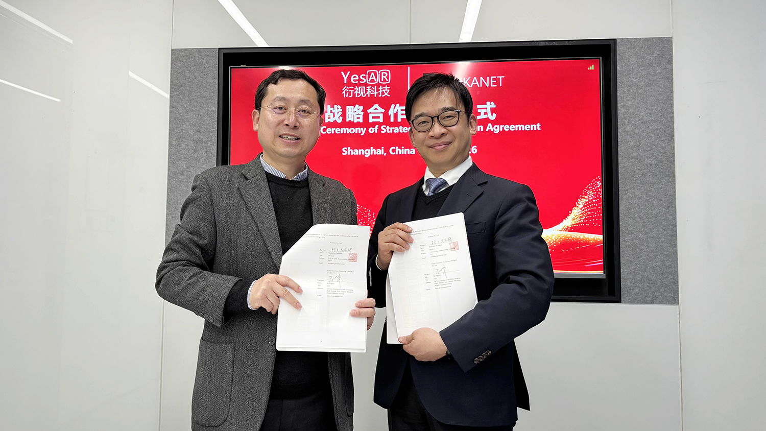 当社は、Yesar Electronics Technology (Shanghai) Co., Ltd.(以下「Yesar社」)と空中ディスプレイ事業での中国におけるライセンス契約を締結し、2026年3月6日(金)、Yesar社オフィスにて調印式およびトップインタビューを実施いたしました。
