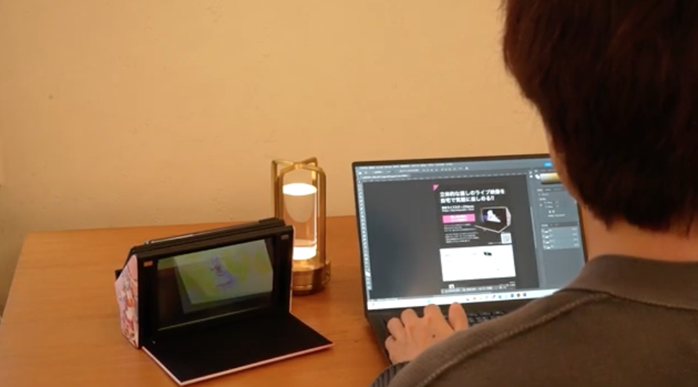スマホの映像が空中に浮かび、まるで推しが目の前にいるような立体的なライブ映像を自宅で気軽に楽しめる!